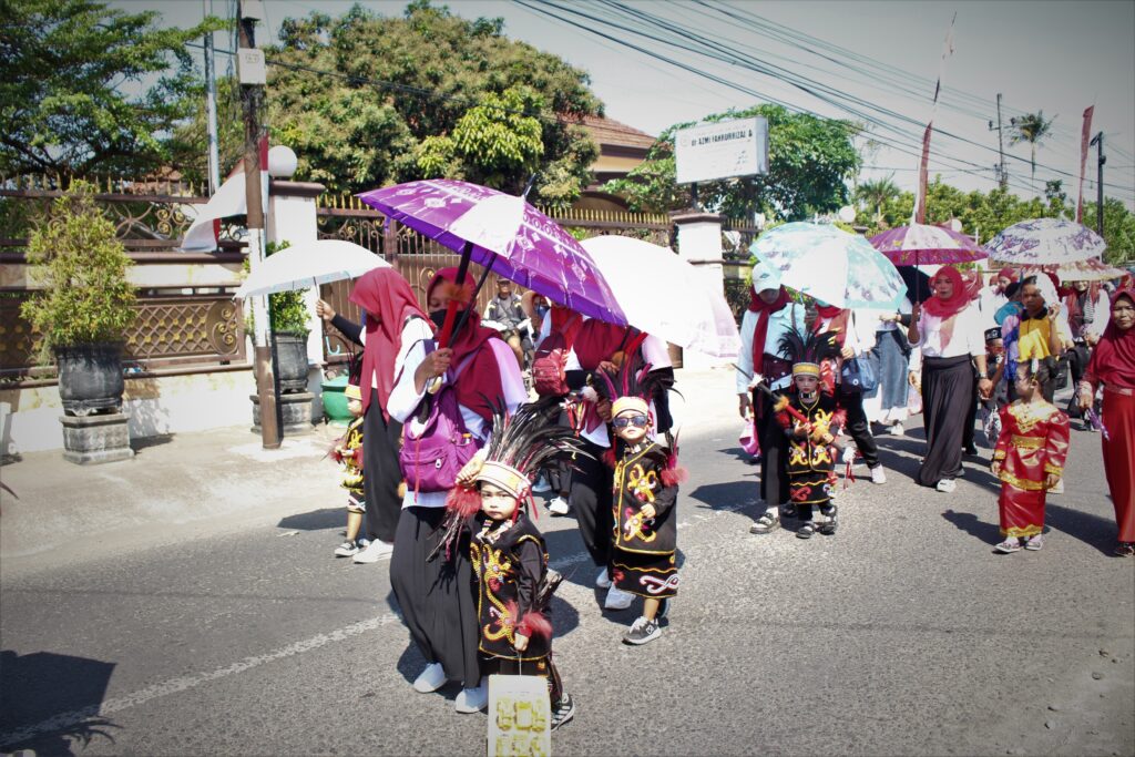 MI Miftahul Huda Pakisaji dan RA Al Huda Pakisaji ikut serta Kirab dengan Drumband andalanya BAHANA KARTIKA, dan juga berbagai macam tampilan Budaya Indonesia. mereka sangat semangat sampai rela antri berhias mulai pukul 05.00 WIB.